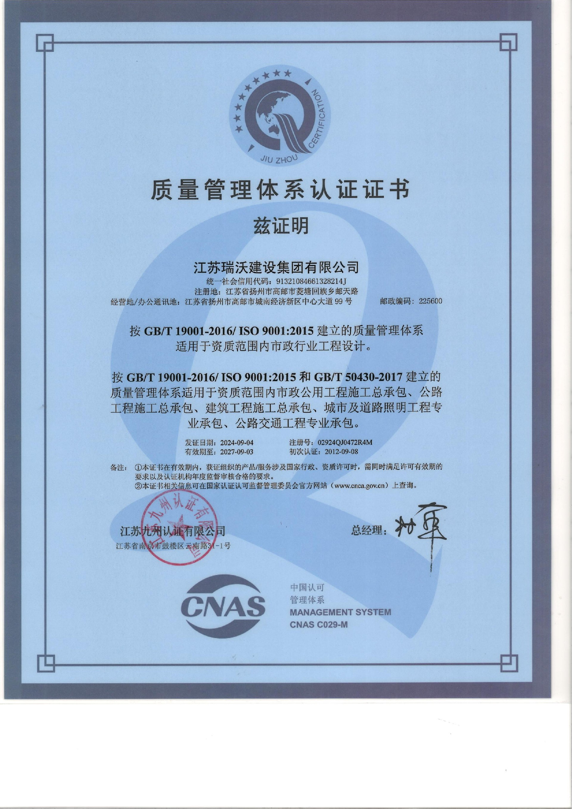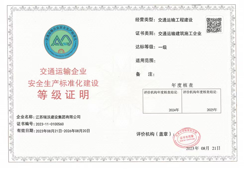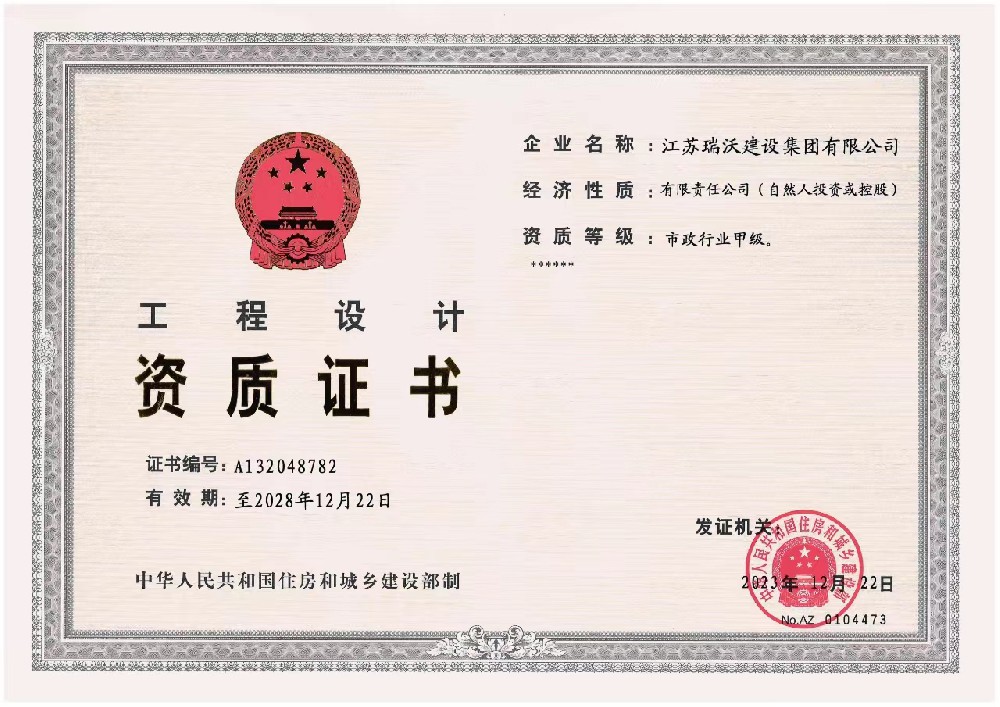 江蘇瑞沃建設集團有限公司成立于2007年,是一家以市政、交通工程建設為主導,集房屋建筑、交通安全設施、城市道路照明工程、電力工程、隧道工程、航道工程及投融資為一體的綜合性企業(yè)。企業(yè)注冊資本60000萬(wàn)元,現有各類(lèi)技術(shù)人員580人,其中中、高級以上人員498人,注冊類(lèi)人員268人,一、二級建造師166人。公司榮獲“江蘇省建筑業(yè)優(yōu)秀企業(yè)”、“江蘇省五一勞動(dòng)獎狀”,連續多年被評為“揚州市先進(jìn)企業(yè)”、“江蘇省建筑業(yè)百強企業(yè)”,連續八年蟬聯(lián)百強企業(yè)基礎設施類(lèi)第一名。